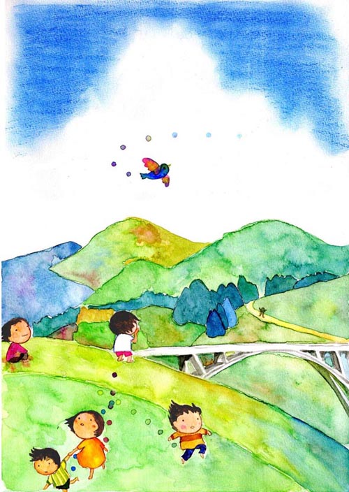 ちくごの青空 「筑後チルドレンズキャンパス実施計画書概要版 〜つながる・出会う・遊ぶ-学ぶ〜」 (平成17年3月筑後田園都市推進評議会委託研究) 下の絵は概要版(パンフレット)の表紙。 ホームページデザイン原案と素材も一部分作成↓ 筑後チルドレンズキャンパス★ホームページ